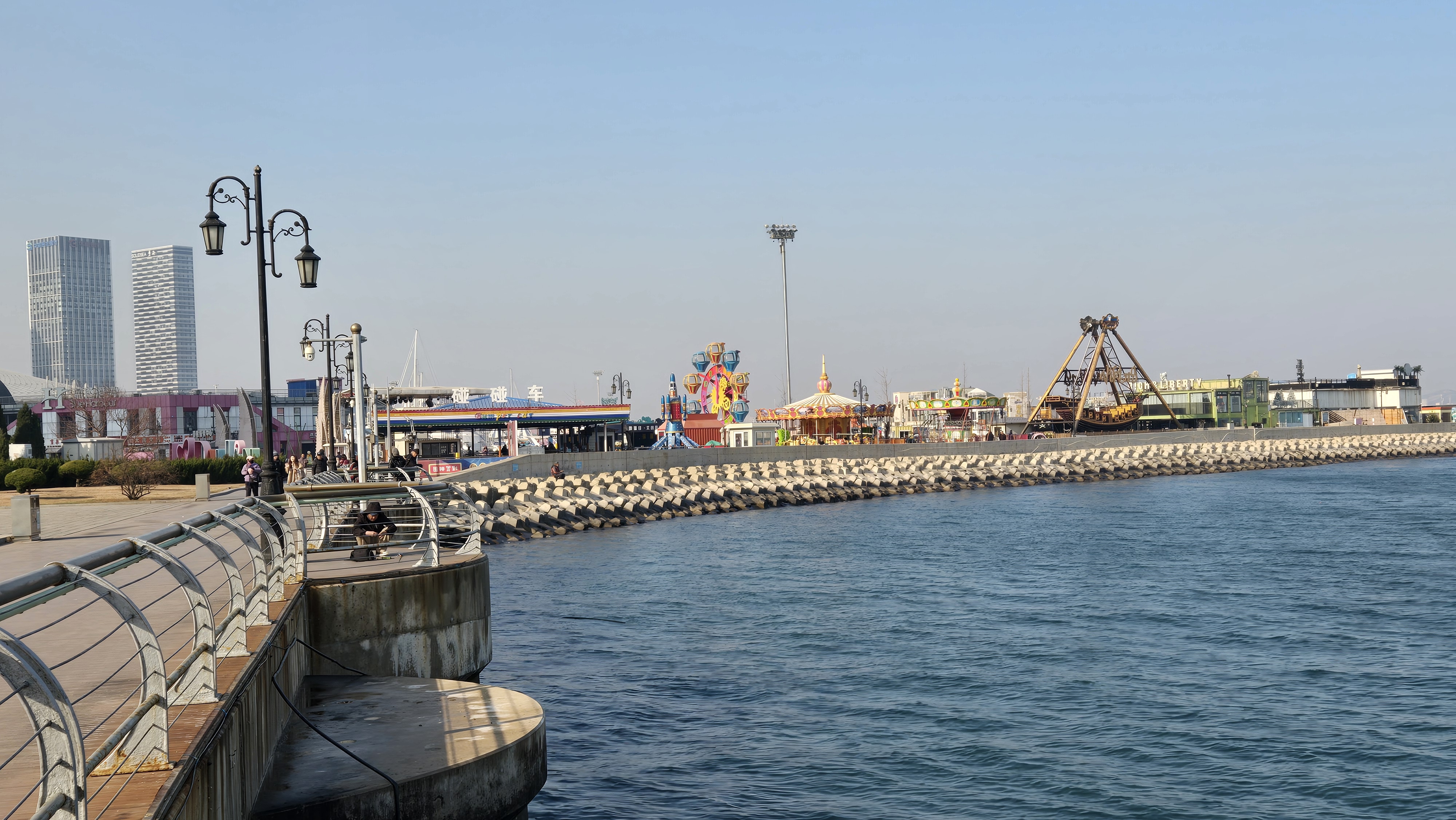 해안가에 놀이동산이 운영되고 있었다.
